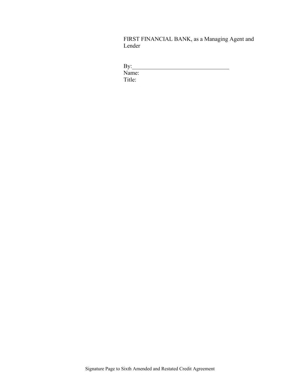 Signature Page to Sixth Amended and Restated Credit Agreement FIRST FINANCIAL BANK, as a Managing Agent and Lender By:_________________________________ Name: Title: