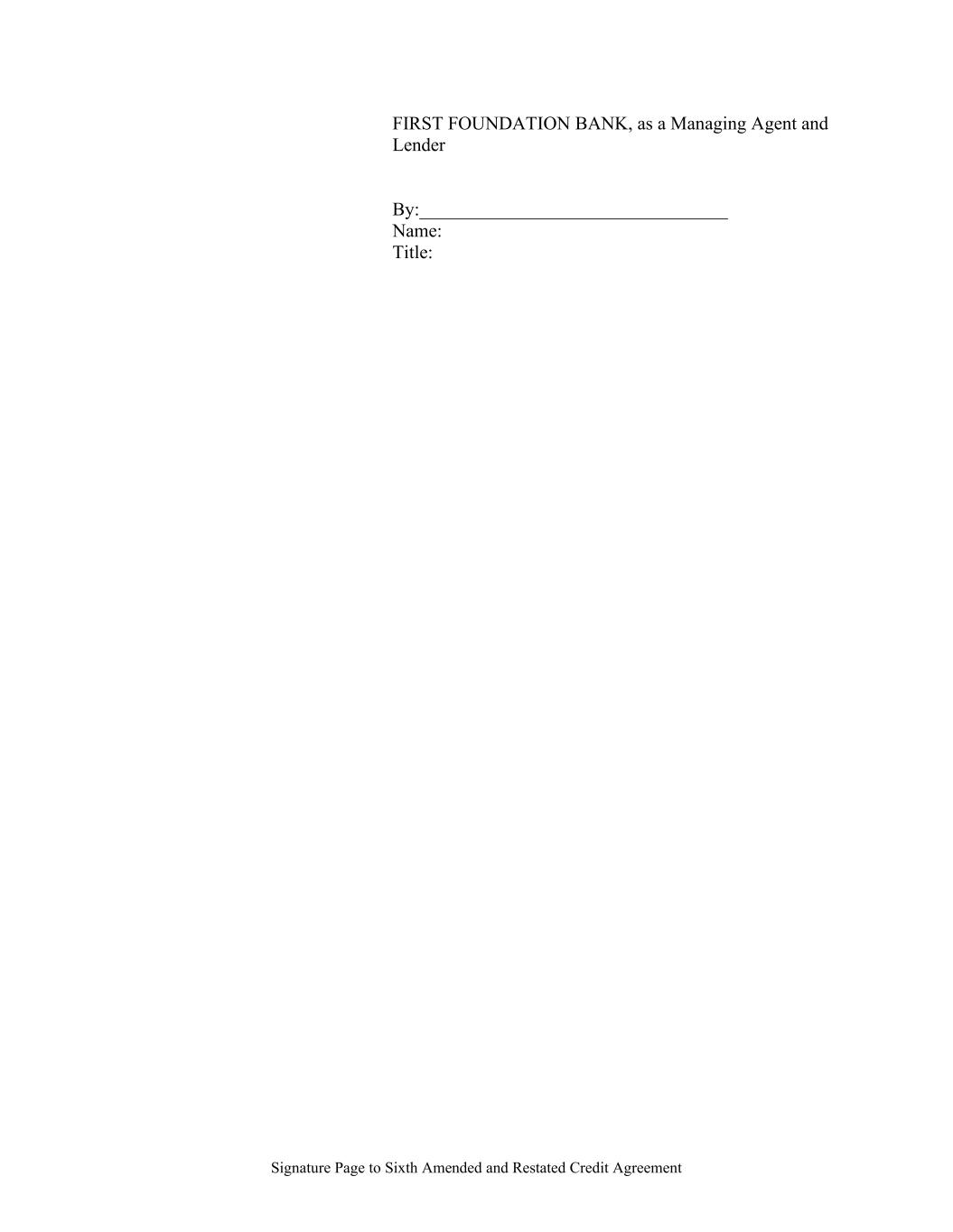 Signature Page to Sixth Amended and Restated Credit Agreement FIRST FOUNDATION BANK, as a Managing Agent and Lender By:_________________________________ Name: Title: