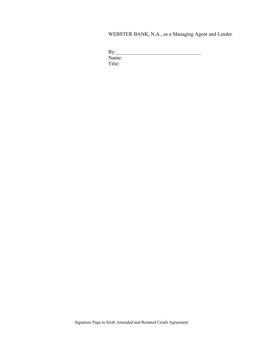 Signature Page to Sixth Amended and Restated Credit Agreement WEBSTER BANK, N.A., as a Managing Agent and Lender By:_________________________________ Name: Title: