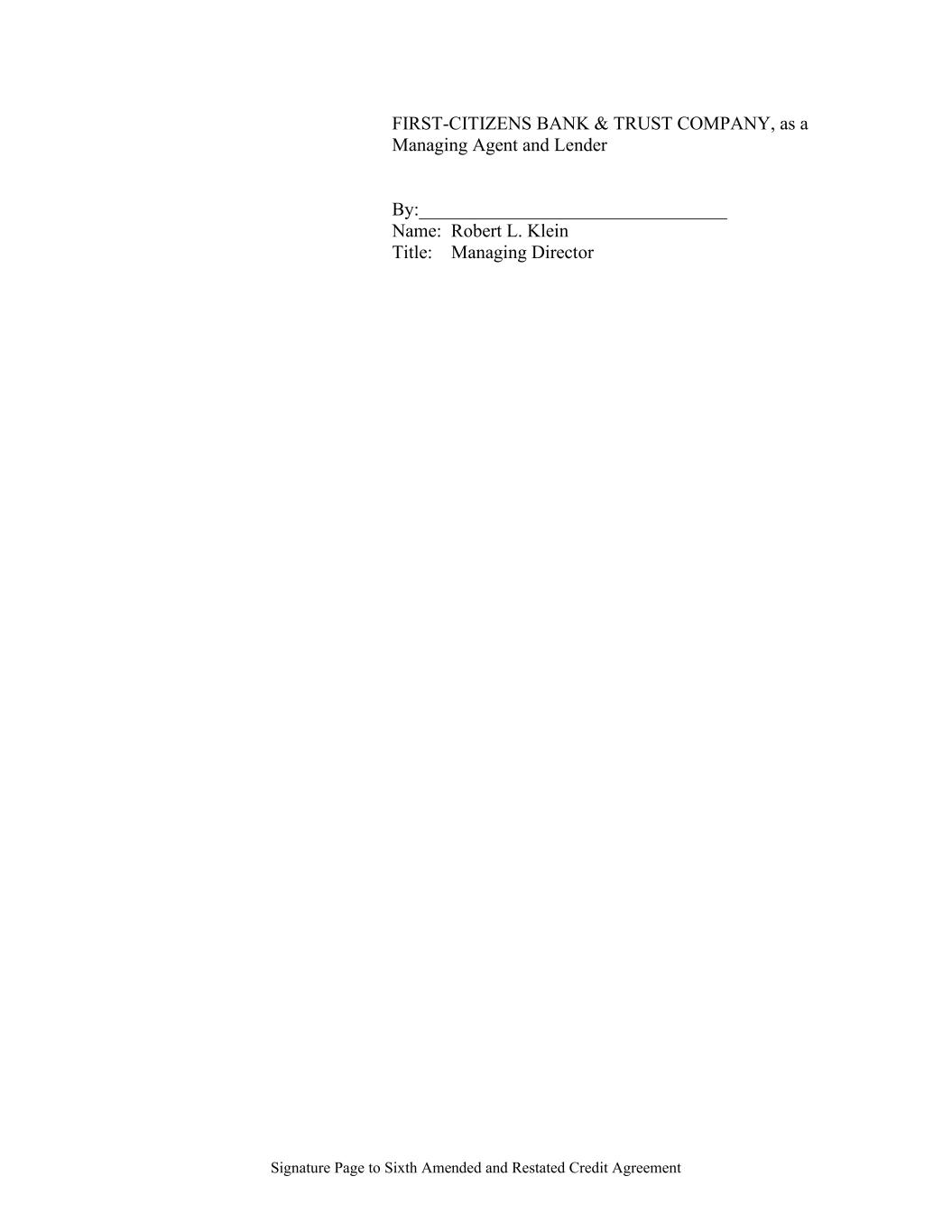 Signature Page to Sixth Amended and Restated Credit Agreement FIRST-CITIZENS BANK & TRUST COMPANY, as a Managing Agent and Lender By:_________________________________ Name: Robert L. Klein Title: Managing Director