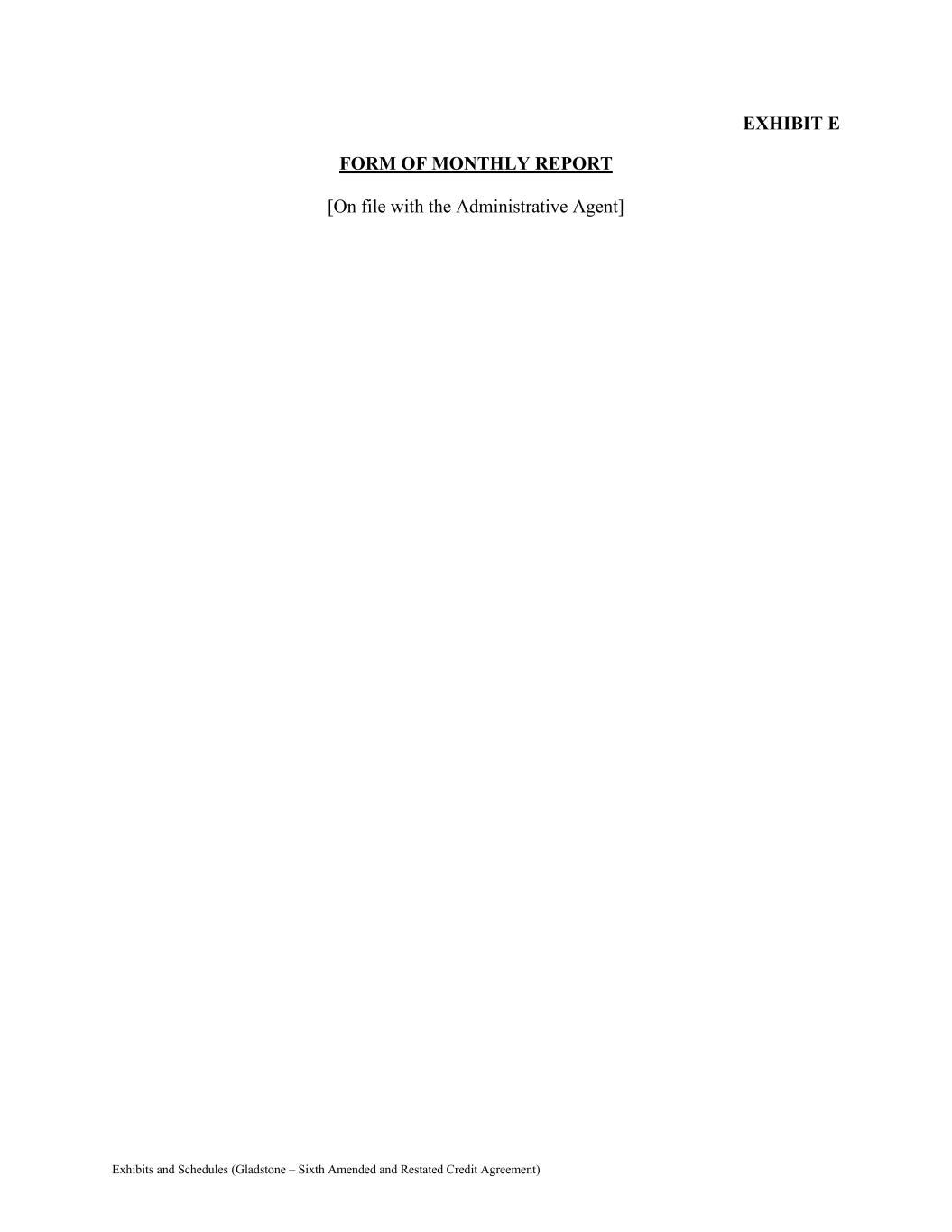 Exhibits and Schedules (Gladstone – Sixth Amended and Restated Credit Agreement) EXHIBIT E FORM OF MONTHLY REPORT [On file with the Administrative Agent]