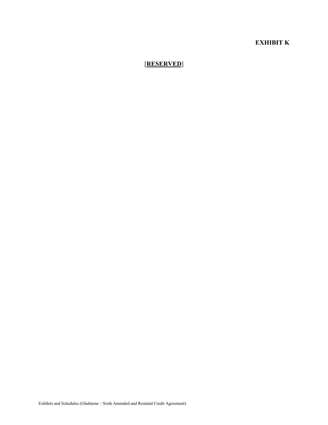 Exhibits and Schedules (Gladstone – Sixth Amended and Restated Credit Agreement) EXHIBIT K [RESERVED]