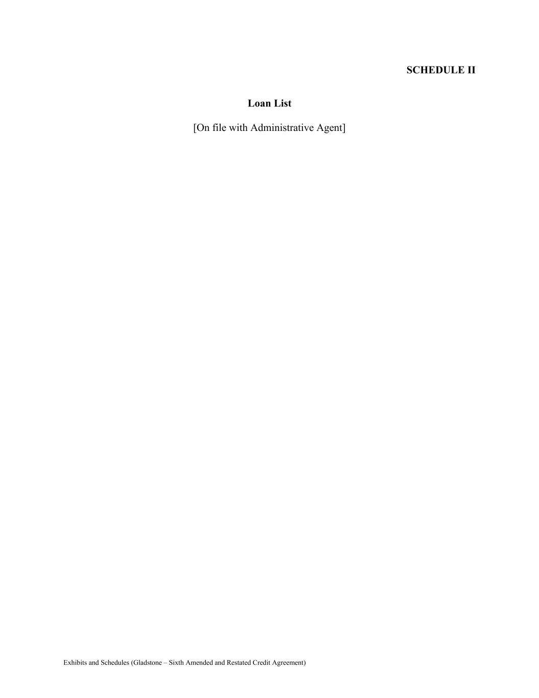 Exhibits and Schedules (Gladstone – Sixth Amended and Restated Credit Agreement) SCHEDULE II Loan List [On file with Administrative Agent]