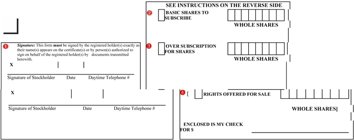 In order to exercise your subscription rights, you must either (a) complete and sign this Subscription Certificate and return it together with payment of the Estimated Subscription Price for the shares of the Companys preferred stock, or (b) present a properly completed Notice of Guaranteed Delivery together with payment of the Estimated Subscription Price for the shares of the Companys preferred stock, in either case to the Subscription Agent, [Subscription Agent], before 5:00 p.m., New York time, on [ ], 201 , the Expiration Date, unless extended by the Company to a date not later than [ ], 201 . Delivery to an address other than the address listed below will not constitute valid delivery.